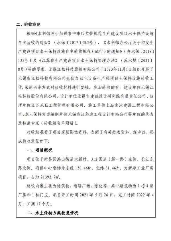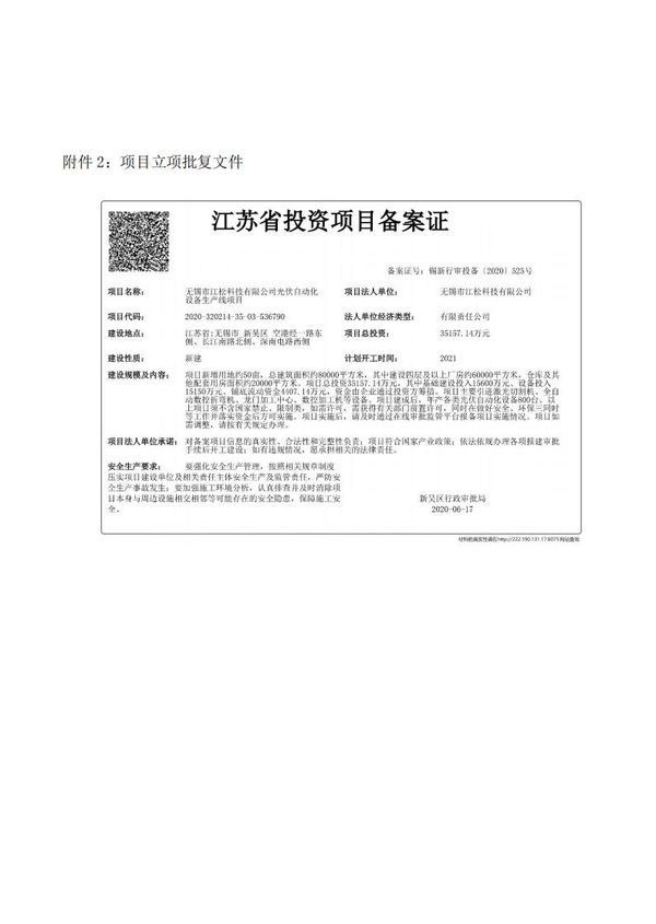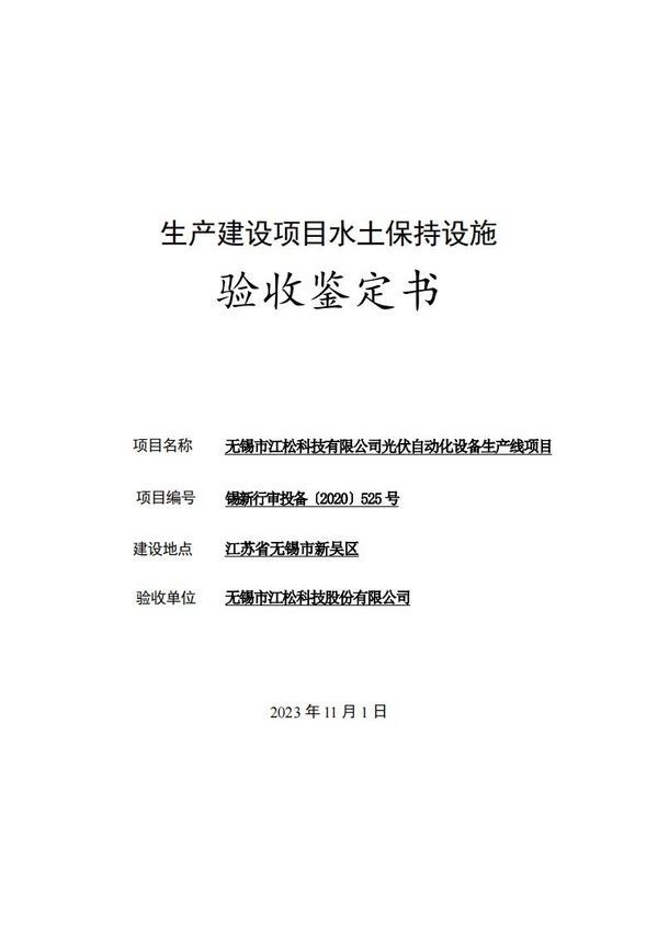Acceptance Certificate of Wuxi Jiangsong Science and Technology Co., Ltd Solar PV Automation Equipment Production Line Project