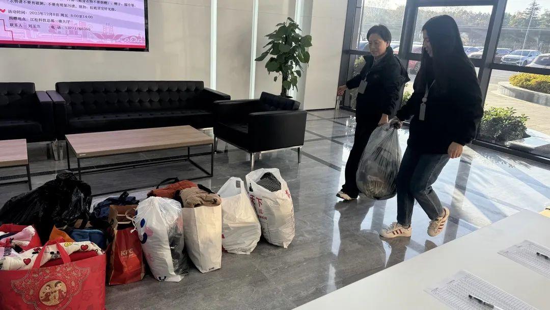 在活动筹备阶段,江松科技与硕放街道积极联系慈善机构和志愿者组织,了解贫困山区孩子们的需求和状况。为了帮助这些孩子度过寒冷的冬天,12月8号综合管理部在总部一楼大厅设立了爱心捐赠处,鼓励员工们积极参与这次活动,把家里闲置不穿的御寒衣物送给有需要的人。