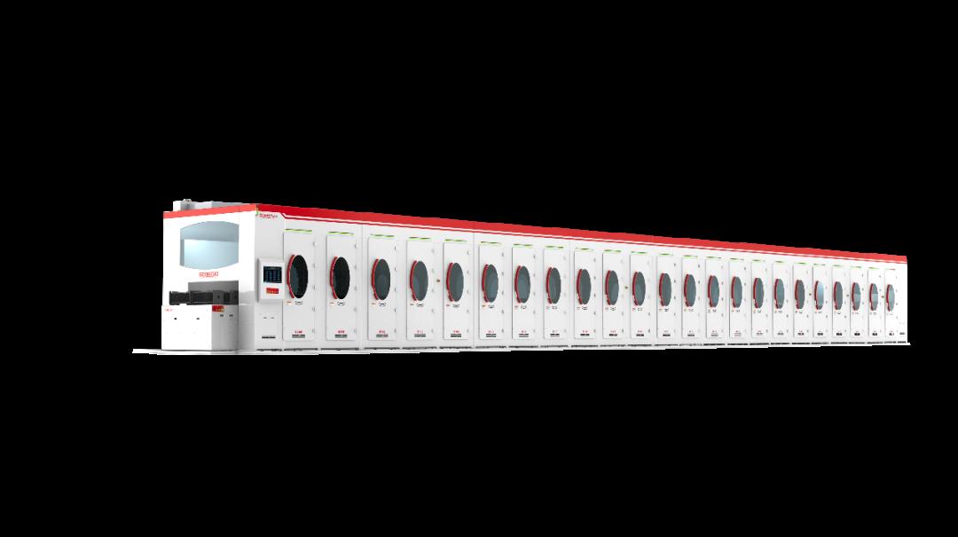本次交付的二代超大产能湿法清洗设备采用多项自主研发设计,适用于光伏TOPCON,XBC,HJT等电池工艺,尺寸兼容方片、矩形片及半片工艺清洗,产能≥18000PC/H,降低设备化学品单耗、设备能耗,提升湿法设备工艺稳定性;采用高精度传 动系统,机械手智能化追踪系统,实时更贴近终端客户使用现场。